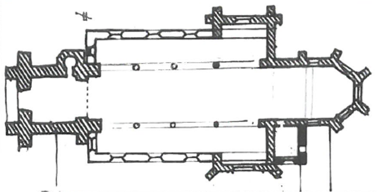A l’est, l’édifice se termine par un choeur partiellement établi sur les fondations du choeur du XIIIe s., qui était de forme rectangulaire. Le choeur actuel date du début du XVIe siècle. Il s’agit du premier allongé par la création d’une abside à trois pans.