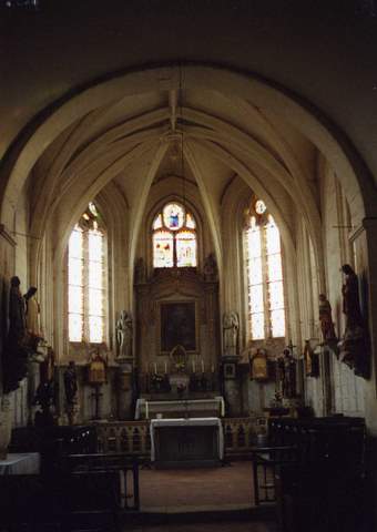 L’architecture du chœur est particulièrement soignée : son vaisseau large de 7 m est voûté d’ogives à nervures prismatiques. Une lierne relie les clefs de la travée droite et de l’abside. Les retombées des voûtes se prolongent sans rupture jusqu’au sol. Au-dessus du soubassement orné d’arcades trilobées peintes, le mur est percé de baies en arc brisé à deux lancettes sous un couronnement qui adopte des formes variées : oculi, soufflets ou mouchettes affrontées. Des nervures prismatiques encadrent les baies aussi bien à l’intérieur qu’à l’extérieur.