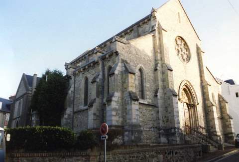 L’église Notre-Dame de Villerville, qui domine le village, fut construite à la fin du XIIe s. Elle est placée sous le vocable de Notre-Dame. Les trois travées du vaisseau central de la nef sont à deux étages alors que les bas-côtés ne sont qu’à un seul niveau. La troisième travée du bas-côté droit est sur montée du clocher de plan carré adossé au transept par ailleurs très peu saillant. Le chœur, assez profond, se termine par un chevet plat.De larges piliers cylindriques à chapiteaux décorés de crochets reçoivent la poussée des arcades qui séparent la nef des bas-côtés. Au second niveau de la nef court un triforium sans circulation où s’ouvrent en triplet des baies trilobées, les ouvertures encadrant la baie centrale sont actuellement m urées. Les voûtes sur croisées d’ogives retombent par un faisceau de trois colonnettes sur l’abaque des piliers. Dans le chœur et les bas-côtés, des culs-de-lampe reçoivent la charge des arcs et des doubleaux ; certains sont ornés de têtes grimaçantes ou de feuillages. L’arc triomphal, en plein centre, est malencontreusement surmonté d’un épais mur formant diaphragme. Les fenêtres du chœur ouvrant au sud sont en arc brisé et ont conservé leur forme primitive avec un fort ébrasement bordé d’un tore. Elles s’appuient à leur base sur un cordon qui fait le tour du chœur. Les ouvertures de la nef, également bordées d’un tore, ont été modifiées. Le clocher, qui est probablement l’élément le plus authentique de l’en semble, jouxte le transept ; il est couvert d’un toit en bâtière et décoré au premier étage d’arcatures aveugles, décoration que l’on retrouve dans un certain nombre d’églises romanes normandes. Les contreforts du chœur qui sont les plus anciens sont plats et doublés aux angles. L’église conserve des tableaux et un mobilier intéressant qui ont fait l’objet d’une inscription à l’inventaire supplémentaire des Monuments historiques le 4 novembre 1975 : du XVIe s., un panneau peint représentant un Calvaire, un chandelier pascal en bois sculpté (XVIIIe s.) et trois toiles représentant respectivement la Sainte Famille, la Présentation de Jésus au Temple (XVIIIe s.) et une Sainte Parenté (XVIIe s.). La Sauvegarde de l’Art Français a participé pour une somme de 40 000 F en octobre 1994 aux travaux de restauration de la toiture du clocher.