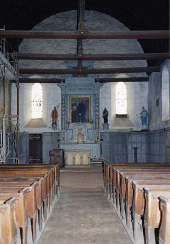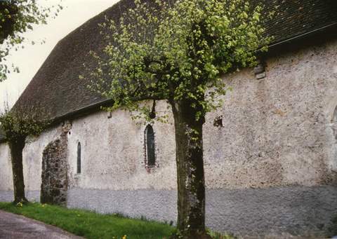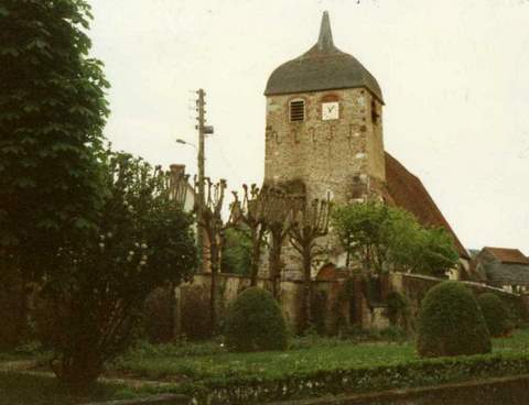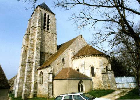 Prieuré de Saint-Benoît-sur-Loire depuis le Xe s, sa possession fut confirmée aux bénédictins après de nombreux conflits avec les seigneurs voisins, en 1147. La construction de l’église actuelle a, sans doute, été commencée peu après cette date. Les vestiges d’un édifice antérieur one été retrouvés le long du mur nord. Précédée à l’ouest par un clocher-porche massif surmonté d’un bulbe aplati à quatre nervures (transformation en 1740), la nef unique est couverte d’une voûte en bois. Elle se termine par un chevet plat, autrefois éclairé à l’est par une fenêtre ogivale dont on peut voir le sommet et une partie de ses remplages à l’extérieur au-dessus du toit de la sacristie moderne. Elle est cachée dans le chœur par un beau retable du XVIIe s. En outre, l’église possède un intéressant bas-relief en pierre polychrome du XVIe s., représentant la « vision de saint Hubert», trois statues du XVIIe s., sainte Anne, saine Jean-Baptiste, saint Benoît et un saint Sébastien, toile du XVIIIe s. En 1902, au cours d’une restauration, on a découvert sur le mur nord des peintures murales du XVe s. qui ont été classées Monuments historiques. Leur thème est « le dit des trois morts et des trois vifs». Pour la réfection de la charpente et de la toiture de l’église, la Sauvegarde de l’Art Français a accordé une subvention de 30 000 F en 1989 et une seconde subvention de 25 000 F en 1993.