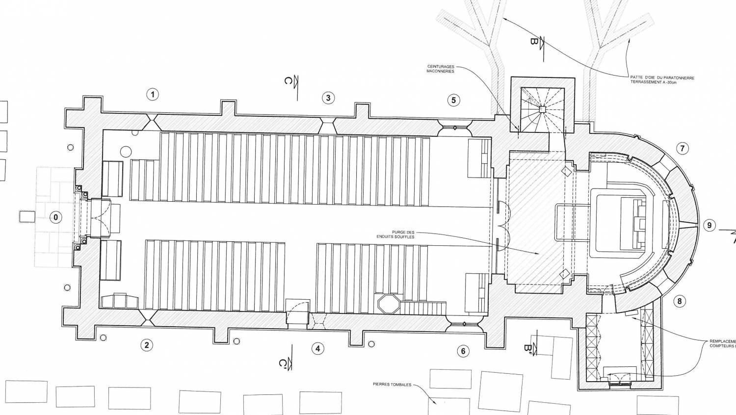 Et de fait, d’après les observations dans les parties où l’enduit est abîmé, il semble bien qu’à cette époque l’église ait été décroûtée et qu’aucune trace de ces peintures ne subsiste.