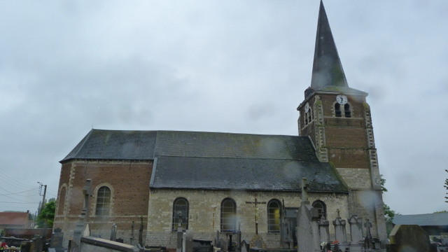 L’église reprend les fondations de l’édifice précédent, comme le rappelle la présence de grès dans les soubassements. Les maçonneries sont pour l’essentiel faites de briques, mais aussi de la pierre calcaire d’Avesnes-le-Sec, présente dans la tour et les premières travées des collatéraux. Il est intéressant de noter le rôle décoratif de la pierre crayeuse qui souligne les corniches, les bandeaux, les chaînes d’angle appareillées en besace, l’encadrement des grandes fenêtres, et alterne avec les briques dans les contreforts d’angle.