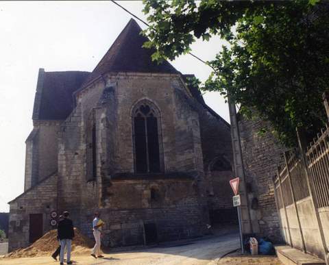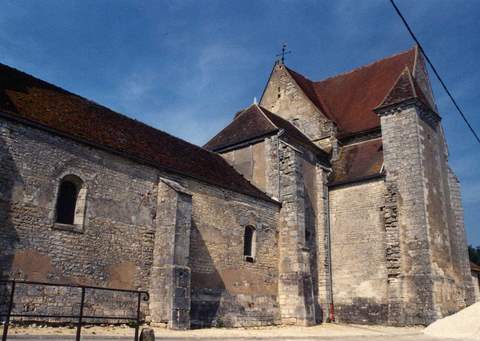 Située au cœur du petit village d’Yrouerre, à une dizaine de kilomètres de Tonnerre, l’église Saint-Nicolas se caractérise par un plan très irrégulier qui résulte de deux campagnes de construction bien distinctes : de l’édifice primitif, construit à la fin du XIIe ou au début du XIIIe s. subsiste la nef, formée d’un vaisseau unique assez étroit éclairé – seulement du côté sud – par trois petites baies en cintre brisé et couvert d’une voûte lambrissée avec entraits et poinçons apparents. Le chœur, terminé par une abside à trois pans percée de baies flamboyantes, et les deux chapelles qui le jouxtent au nord et au sud, ont été reconstruits entre la fin du XVe s. et le début du XVIe s. Leurs voûtes, sur croisées d’ogives, sont nettement plus élevées que celle de la nef. La chapelle nord était seigneuriale : les tombeaux ont disparu à la Révolution, mais des traces de litre funéraire avec décor armorié y subsistent, ainsi qu’une poutre de gloire du XVe s. La piscine, dans le chœur, et une niche de la chapelle sud sont surmontées de gâbles flamboyants. Enfin, l’église conserve un panneau peint de l’école flamande et une statue de la Vierge, tous deux du XVIe s. L’église Saint-Nicolas, à l’exception de son clocher moderne, est inscrite à l’Inventaire supplémentaire des Monuments historiques. Pour la reprise de la couverture, de la charpente du transept et des maçonneries du mur pignon nord, la Sauvegarde de l’Arc Français a accordé une subvention de 60 000 F en 1990.